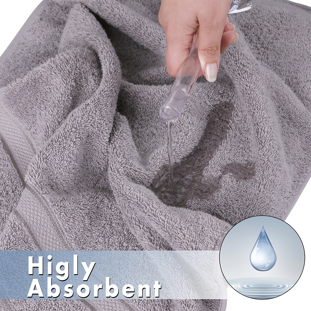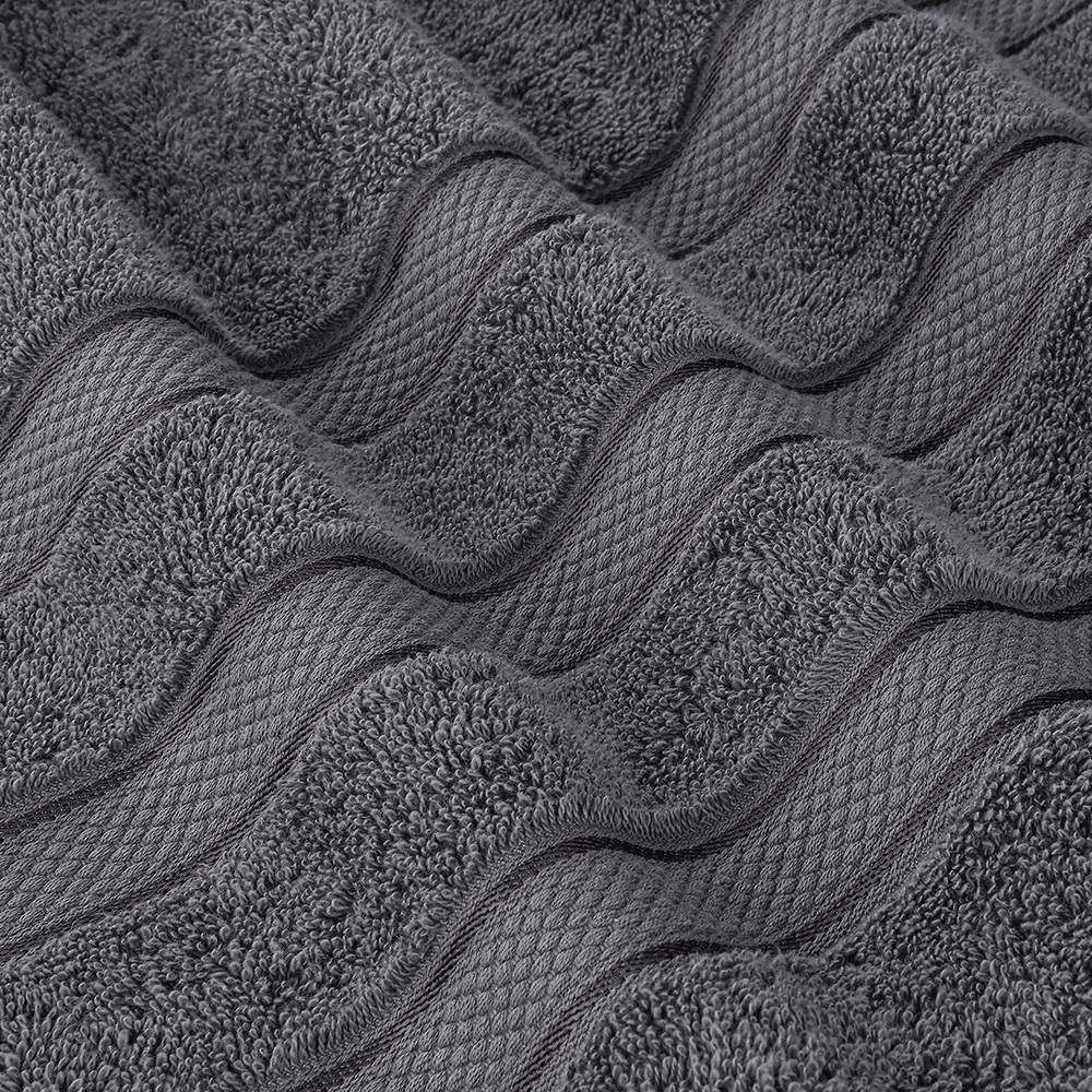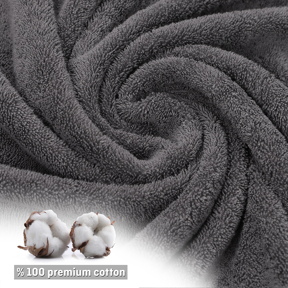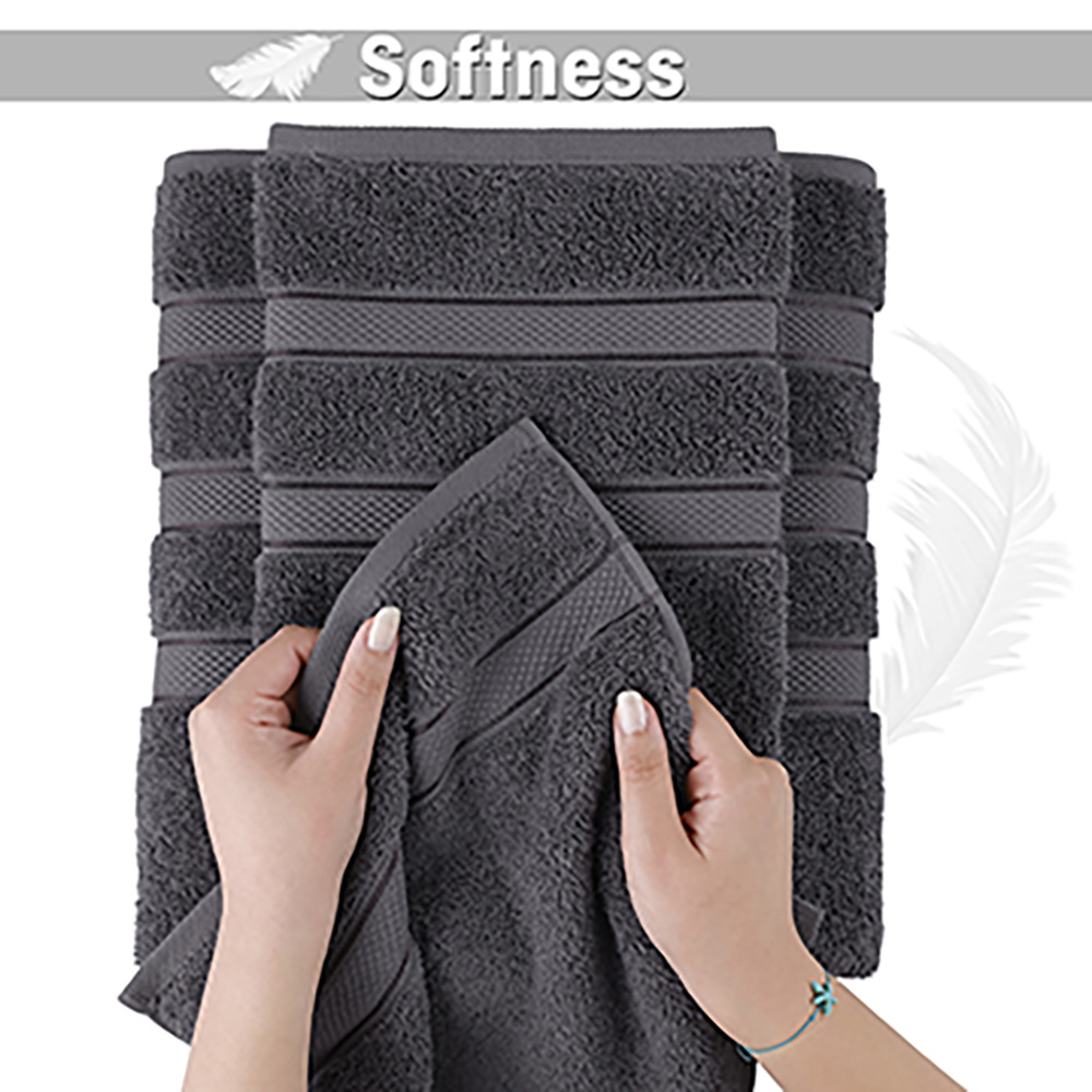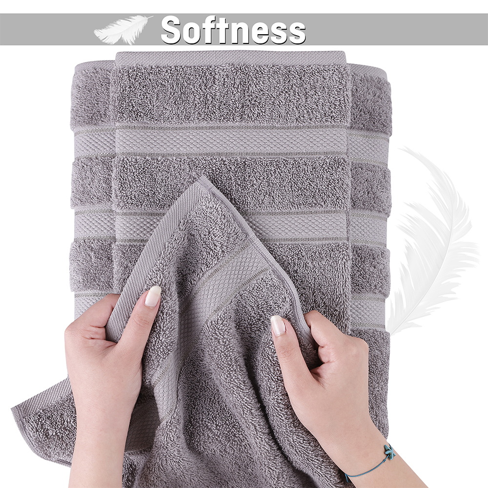 The towels are designed to be highly absorbent, meaning they quickly and efficiently dry off your skin after a shower or bath. The cotton fibers are designed to wick away moisture, ensuring that you're left feeling dry and comfortable after use. The ring spun premium cotton used in these towels allows for maximum softness and fluffiness. It creates an incredibly plush texture that feels gentle and cozy against your skin.