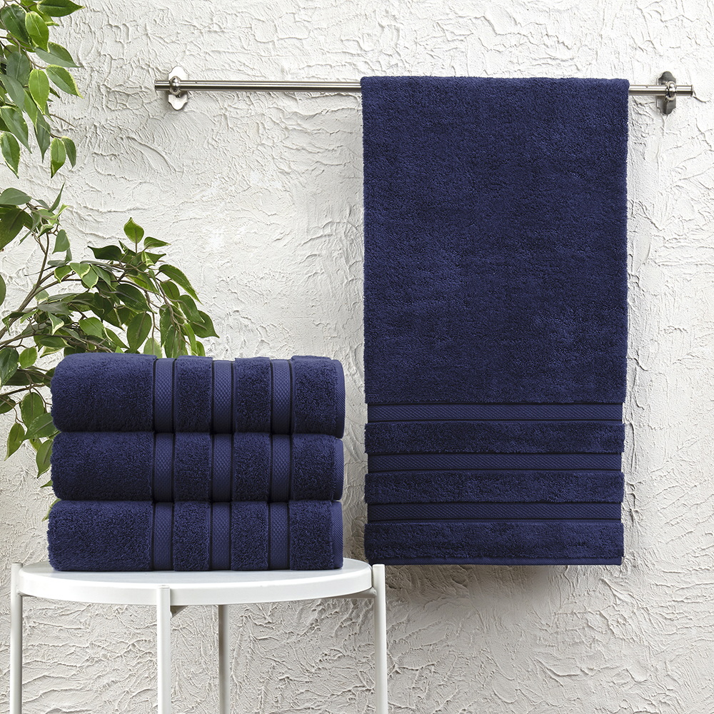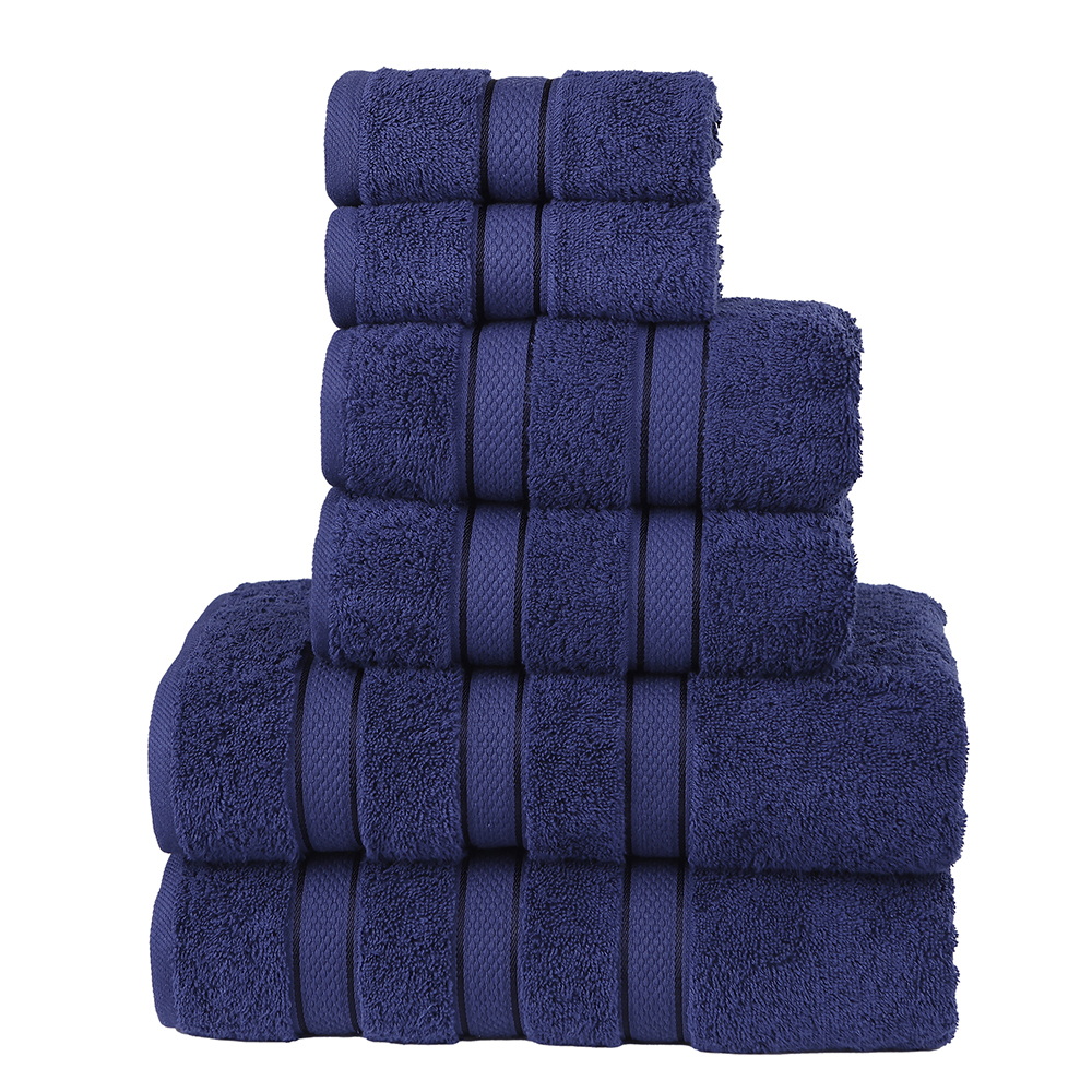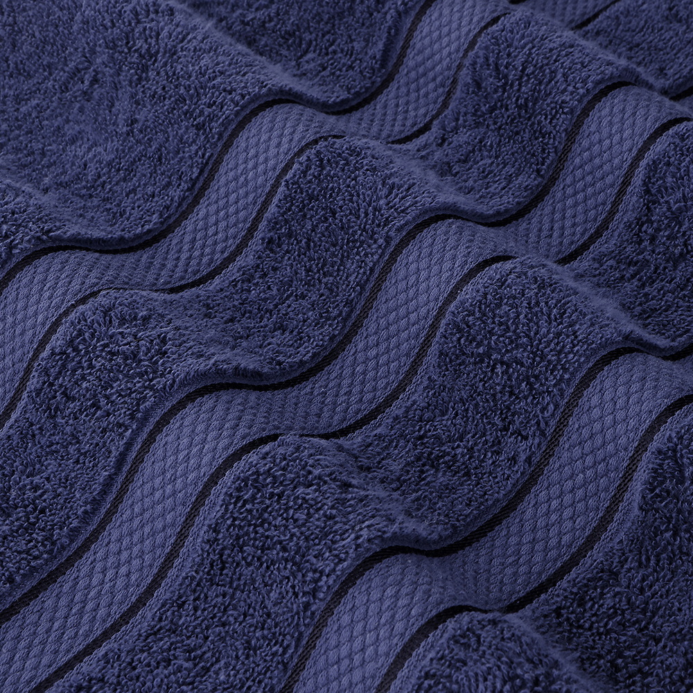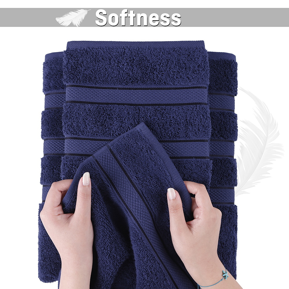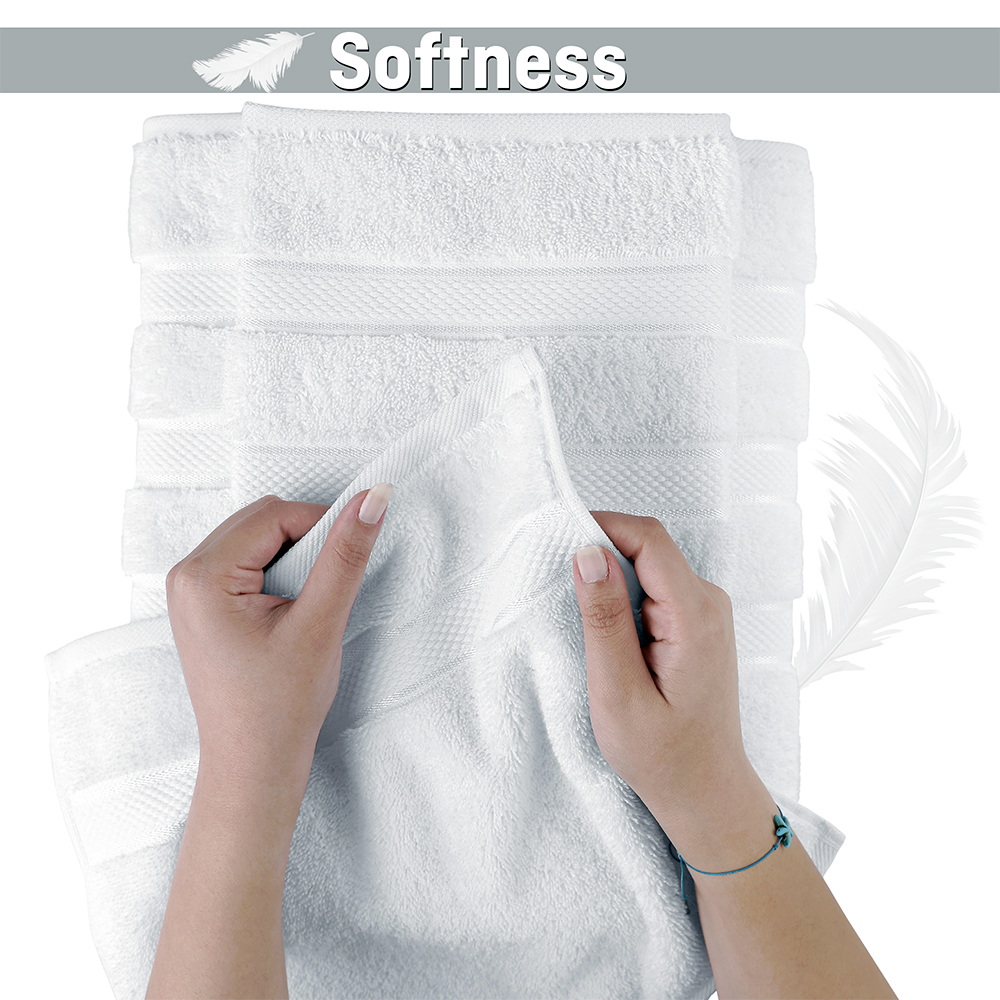 The towels are designed to be highly absorbent, meaning they quickly and efficiently dry off your skin after a shower or bath. The cotton fibers are designed to wick away moisture, ensuring that you're left feeling dry and comfortable after use. The ring spun premium cotton used in these towels allows for maximum softness and fluffiness. It creates an incredibly plush texture that feels gentle and cozy against your skin.